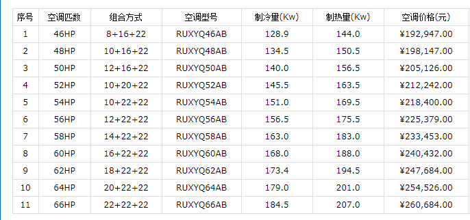 2、VRV X系列雙模塊室外機價格表