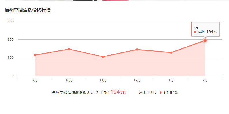 在福州洗次空調(diào)的費(fèi)用一般在60-200元一臺(tái)左右,具體價(jià)格與空調(diào)的規(guī)格和清洗的難度有關(guān),下面為近段時(shí)間空調(diào)清洗的費(fèi)用波動(dòng)圖,可供參考!