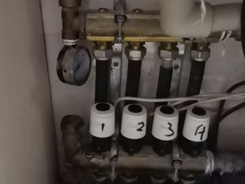 第四步,每路分水器逐一進(jìn)行清洗,把地暖管從分水器上取下,用專業(yè)的地暖管清洗彈頭、用氣槍射擊彈頭,用氣泵作為動(dòng)力系統(tǒng)。