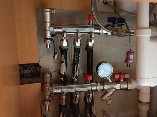 這時(shí)可打開(kāi)分集水器的放氣閥,將氣體排出,方法和傳統(tǒng)供熱相同。系統(tǒng)各支路的水流量可以通過(guò)調(diào)節(jié)各支路上的球閥,并以此達(dá)到控制各部分溫度的目的,但調(diào)節(jié)時(shí)應(yīng)慎重以免影響其他支路。鋪設(shè)在地面下的地暖管距地板面僅約3-100px,砸碰、敲擊地面容易傷及地暖管。因此,鋪設(shè)地暖管道的地面嚴(yán)禁敲砸、撞擊,以防損壞地暖管。