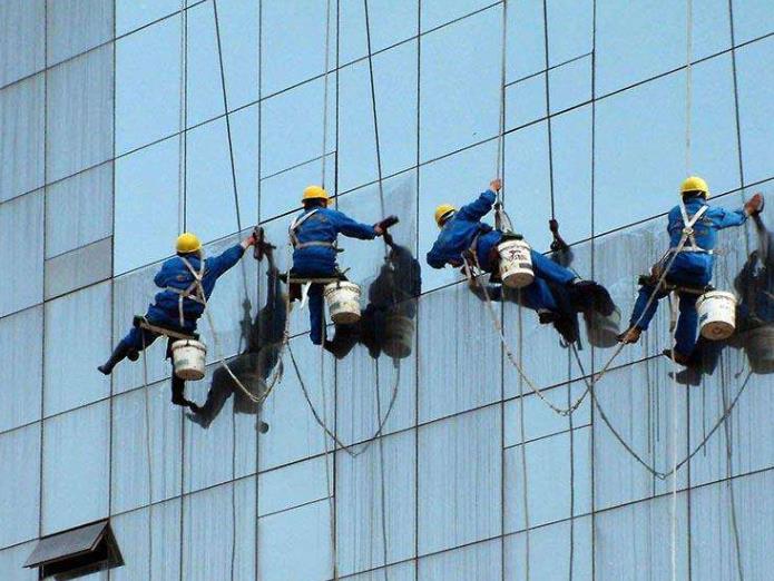 吊板方式是用吊繩、吊板將人吊到工作位置進行清洗。這種聲式比較簡單,成本也低,只要工人身體素質好、繩子連接牢固就可以進行,一般的大樓都可以用這種方式進行清洗,但是這種方式的操作必須使安全措施到位,否則危險性很大,造成傷亡事故的都是因安全措施不到位造成的。