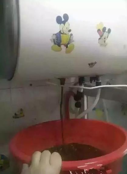 打開泄壓閥后,拆開熱水管處的金屬軟管的接頭,這時應(yīng)該看到從泄壓閥中有水流出,放掉內(nèi)膽中的存水,等到泄壓閥管口基本不再有水流出時,內(nèi)膽中的水基本已經(jīng)全部放出來了,而隨著放出的水 ,內(nèi)膽里大部分水垢(絮狀物)也已經(jīng)排出來了。