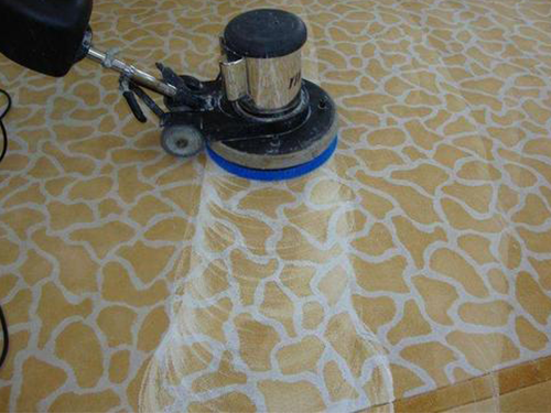 2.將地毯清潔劑、化油劑按比例加水稀釋好并注入發(fā)泡箱用“Z"字型均勻清洗地毯,清洗同時(shí)使用大功率吸水機(jī)將地毯中的水漬吸出。