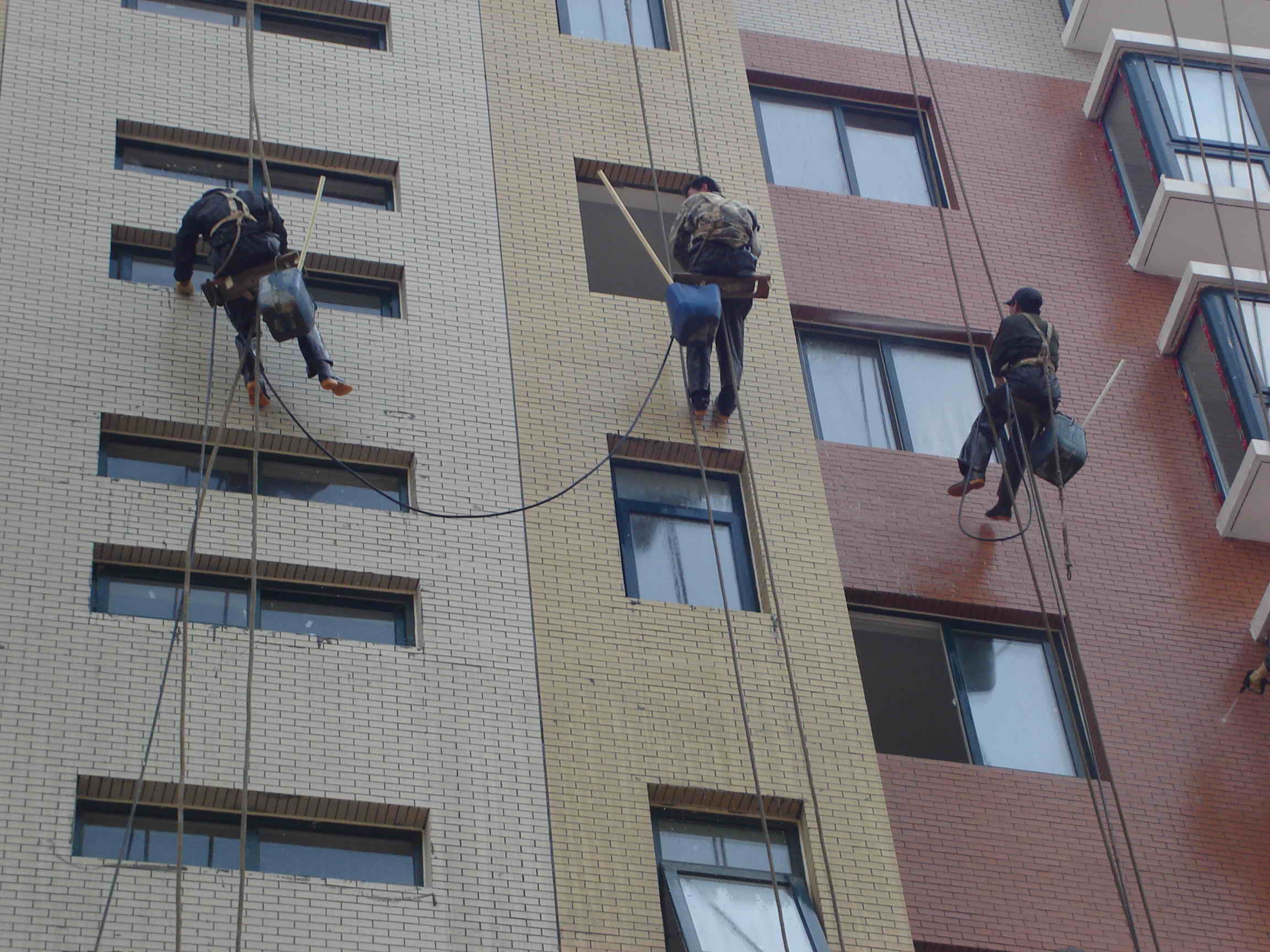 建筑物在建成以后,外墻在建設(shè)中都會(huì)殘留建筑垃圾的二次污染,因此在投入使用之前都要進(jìn)行一次徹底的保潔,保潔中外墻清洗是一項(xiàng)高難度的工作,因此要規(guī)范操作,確保安全第一。