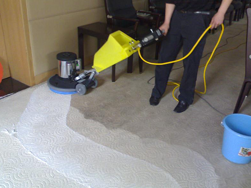 4 )擦洗:用清水擦洗,同時在水中加入去味劑,以便將地毯中所代的異味去除。