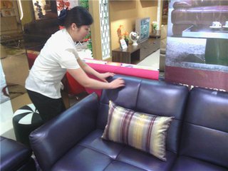 (2)污染嚴(yán)重的真皮沙發(fā),不僅失去了原有的光澤,而且污垢滲入到真皮毛細(xì)孔里,如果要將這些污垢清洗干凈,需要用清洗沙發(fā)的專用蒸汽機(jī)和專用的清洗劑, 否則清洗效果達(dá)不到。