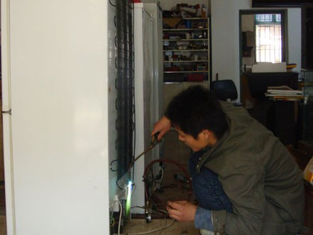 1.重新發(fā)泡維修法 檢修時(shí)需撬開(kāi)冰箱后背板,挖出原有的發(fā)泡物質(zhì)(挖時(shí)應(yīng)十分小心,不要碰壞原有管路和 電線 )。露出蒸發(fā)管后再充氮?dú)鈾z漏,檢漏時(shí)要特別注意各個(gè)連接焊點(diǎn)。這種修理方法對(duì)于制冷系統(tǒng)在背部有連接頭的情況較為合適,不適于更深層處有漏點(diǎn)的制冷管道出現(xiàn)內(nèi)漏等情況。查出漏點(diǎn)后進(jìn)行補(bǔ)焊或用膠粘池修復(fù),再重新發(fā)泡并補(bǔ)好背板即可。