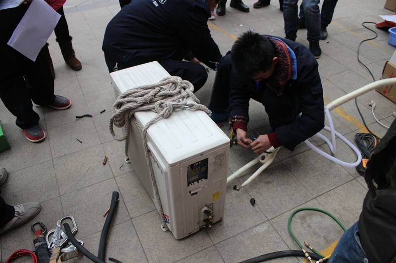 通電試機前先查一下電壓,再用遙控器啟動運行。室外機工作以后,檢查運行電流是否與銘牌標注相一致,如小于銘牌標注的電流可視為氟利昂量少,不急于加氟,可繼續(xù)觀察管道接頭處的結露或結霜情況,注意連接管只能結露,不能結霜。