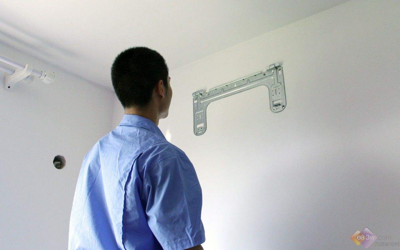 2.在空調(diào)外機在安裝的時候為了確保安全,做好還是要用比較大的螺絲固定一下。安裝好外機就該安裝內(nèi)機。內(nèi)機在安裝的時候要離房頂大約十公分。