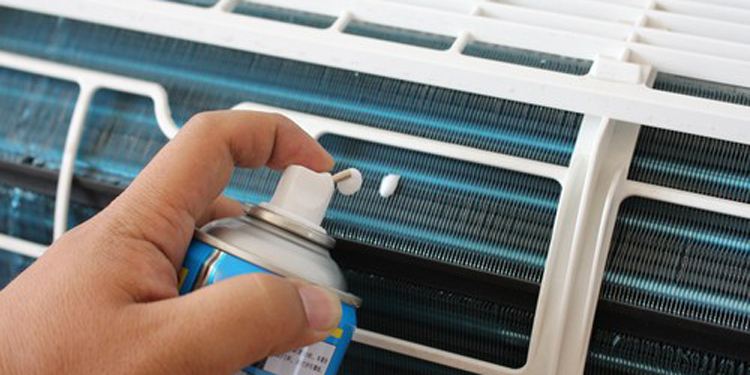 3、清理干凈過濾網(wǎng)后,我們就可以對冷凝器來進行清理了,這時候我們就需要用到專門清洗空調(diào)的清潔劑了,要將空調(diào)清潔劑均勻的噴到冷凝器上面,在噴完冷凝器后把空調(diào)重新裝好,等待十分鐘,將空調(diào)啟動調(diào)到最大風量,等待一些時間后,冷凝器里面的臟物和灰塵就會隨著水一起排出空調(diào)了。