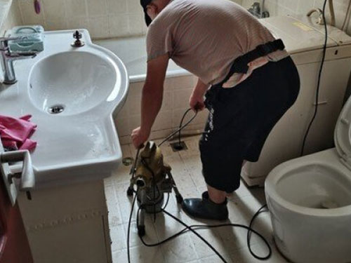 7.準(zhǔn)備一根直徑比排水口略小一點(diǎn)的圓木,然后在水池中放一些水,將圓木插在水管口迅速上下抽動(dòng),運(yùn)用壓力和吸力的作用將管道里的堵塞物沖走。