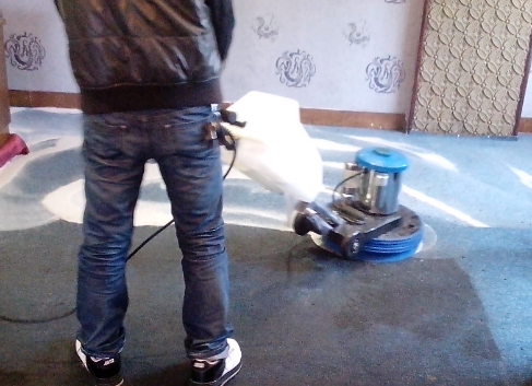 然后,干泡刷洗:用裝有打泡器、地毯刷的單盤掃地機(jī),以干泡刷洗地毯。