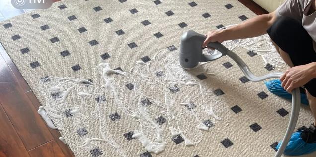 干泡法:使用干泡清洗劑,將泡沫均勻涂抹在地毯上,待泡沫干透后,用吸塵器吸走。