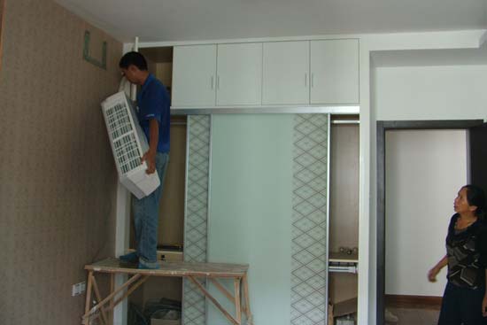 確定內(nèi)、外機(jī)位置后,立即安裝好內(nèi)機(jī)掛板,待內(nèi)機(jī)掛板和外機(jī)安裝牢固以后,再把連接管捋平直,查看管道有沒有彎癟現(xiàn)象;接下來檢查兩端喇叭口,如果有裂紋,應(yīng)重新擴(kuò)口,否則就會導(dǎo)致漏氟。最后,檢查控制線,在確定控制線、管路、出水管都保持良好后,把它們綁扎在一起并將連接管口密封好。過墻時應(yīng)兩個人在墻內(nèi)、外配合緩慢穿出,避免拉傷;連接好管道與內(nèi)、外機(jī),并接好控制線。最后就是排除管道和內(nèi)機(jī)中的空氣。